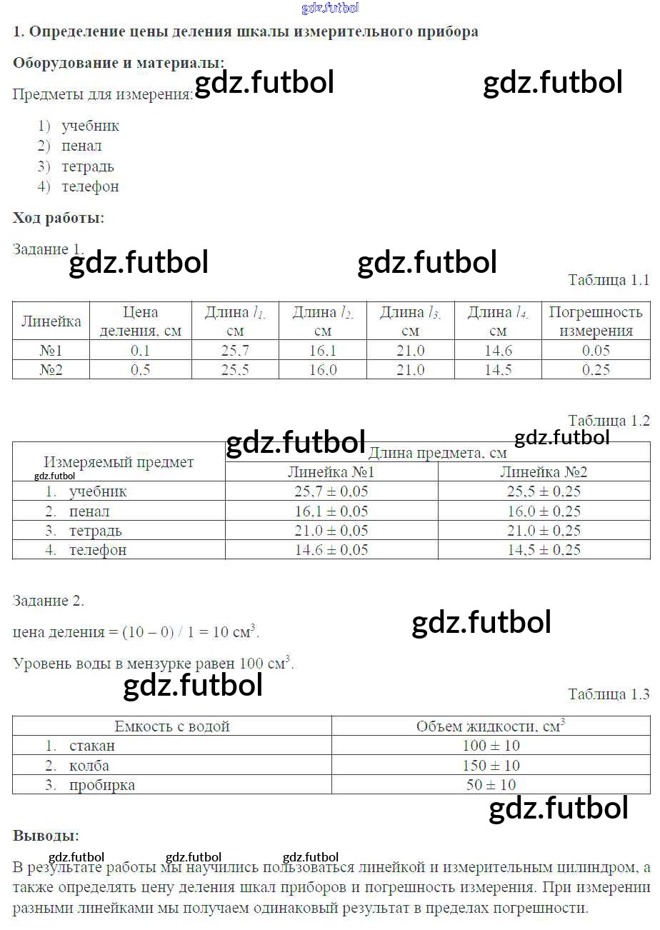 Готовые домашние задания по Физике за 7 класс Белага Тетрадь-практикум Сферы 2012 ФГОС - Лабораторные работы №1. Определение цены деления шкалы измерительного прибор