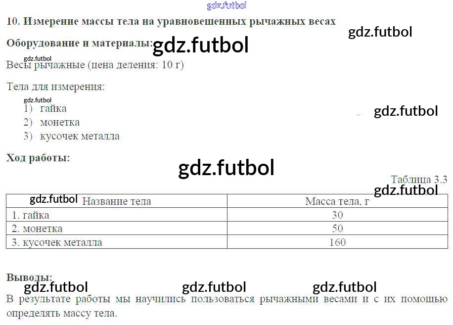 Готовые домашние задания по Физике за 7 класс Белага Тетрадь-практикум Сферы 2012 ФГОС - Лабораторные работы №10. Измерение массы тела на уравновешенных рычажных весах