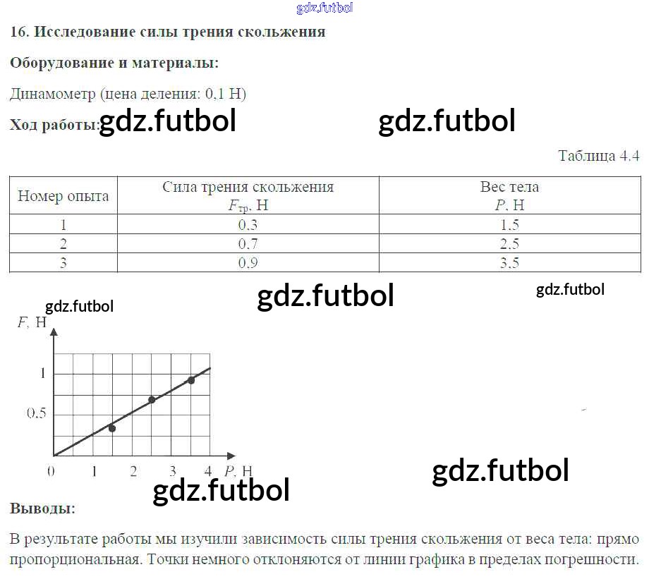 Готовые домашние задания по Физике за 7 класс Белага Тетрадь-практикум Сферы 2012 ФГОС - Лабораторные работы №16. Исследование силы трения скольжения