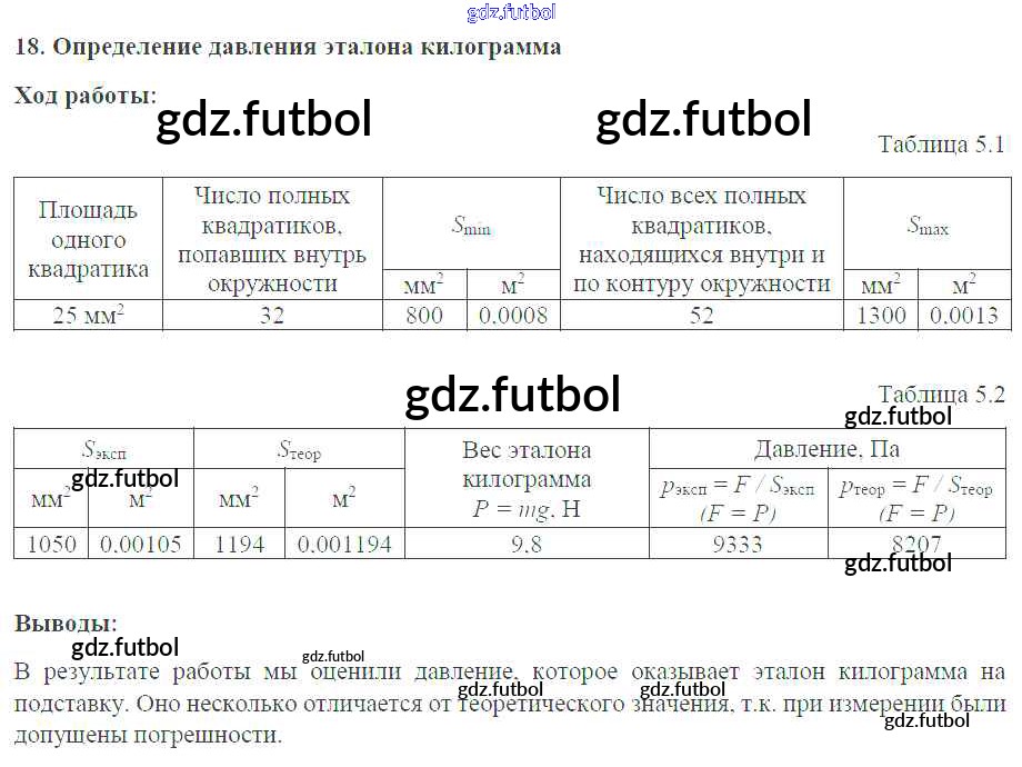 Готовые домашние задания по Физике за 7 класс Белага Тетрадь-практикум Сферы 2012 ФГОС - Лабораторные работы №18. Определение давления эталона килограмма