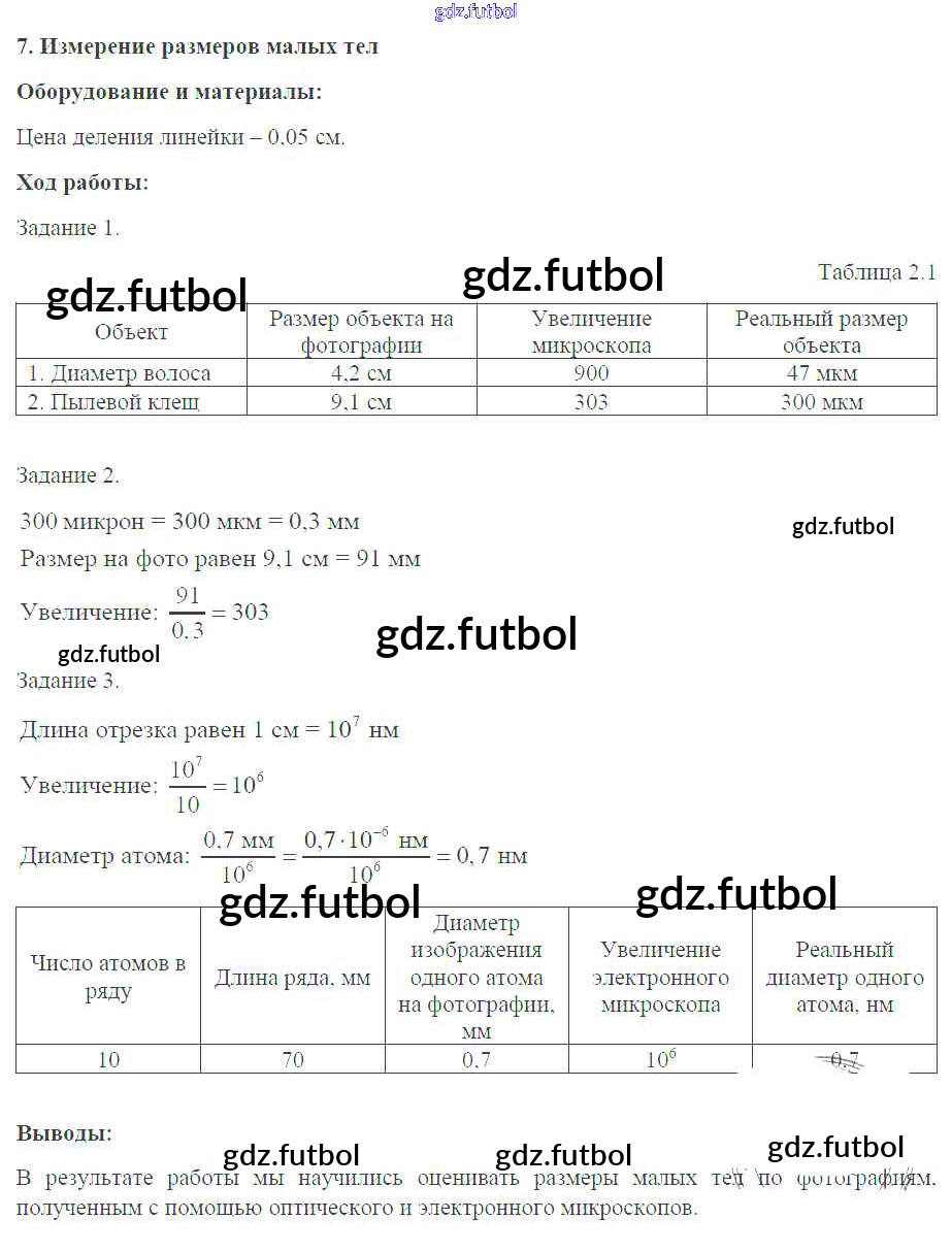 Готовые домашние задания по Физике за 7 класс Белага Тетрадь-практикум Сферы 2012 ФГОС - Лабораторные работы №7. Измерение размеров малых тел