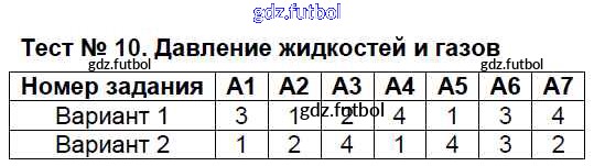 Готовые домашние задания по Физике за 7 класс Бобошина Контрольно-измерительные материалы (КИМ) 2014 ФГОС - Тесты Тест №10. Давление жидкостей и газов