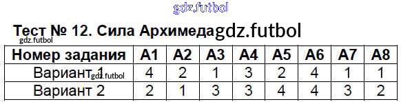 Готовые домашние задания по Физике за 7 класс Бобошина Контрольно-измерительные материалы (КИМ) 2014 ФГОС - Тесты Тест №12. Сила Архимеда