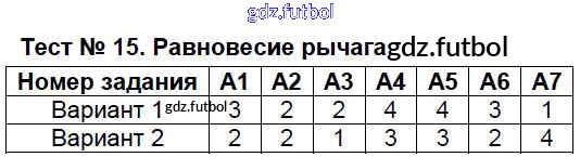 Готовые домашние задания по Физике за 7 класс Бобошина Контрольно-измерительные материалы (КИМ) 2014 ФГОС - Тесты Тест №15. Равновесие рычага
