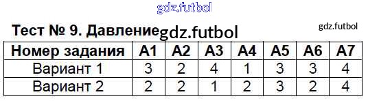 Готовые домашние задания по Физике за 7 класс Бобошина Контрольно-измерительные материалы (КИМ) 2014 ФГОС - Тесты Тест №9. Давление