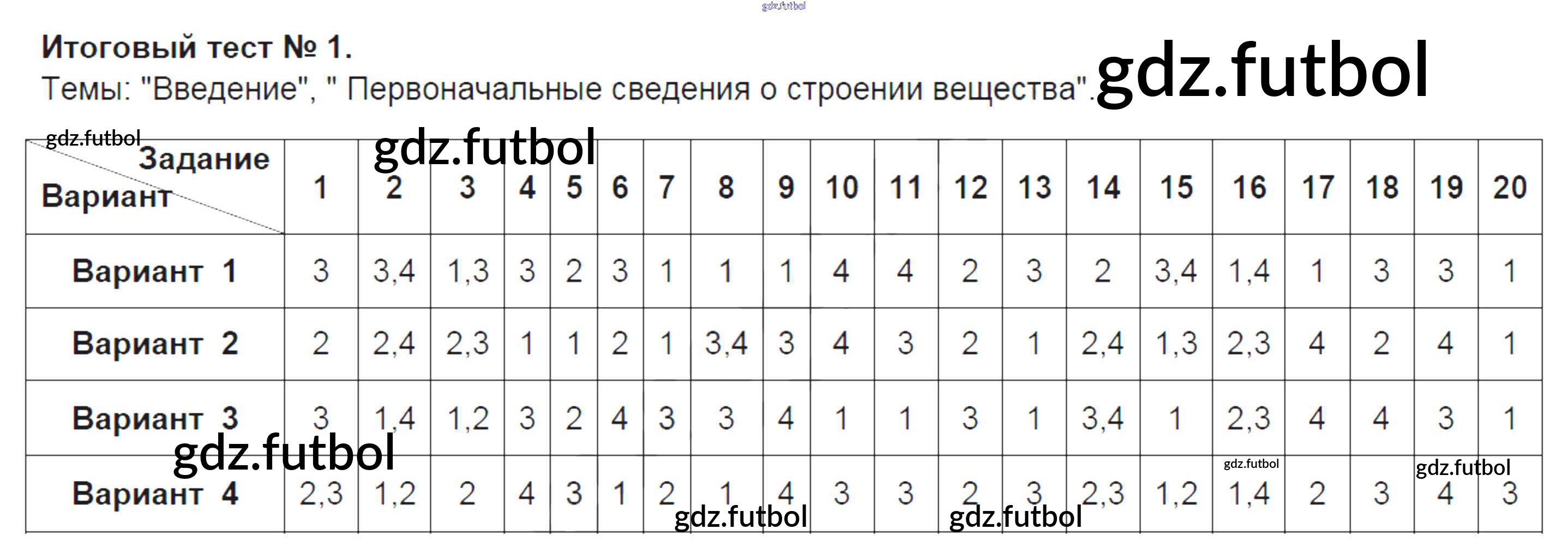 Готовые домашние задания по Физике за 7 класс Чеботарева Тесты УМК 2017 ФГОС - Глава 1 Итоговый тест №1