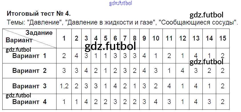 Готовые домашние задания по Физике за 7 класс Чеботарева Тесты УМК 2017 ФГОС - Часть 1 Итоговый тест №4