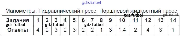 Готовые домашние задания по Физике за 7 класс Чеботарева Тесты УМК 2017 ФГОС - Часть 2 Манометры. Гидравлический пресс. Поршневой жидкостный насос