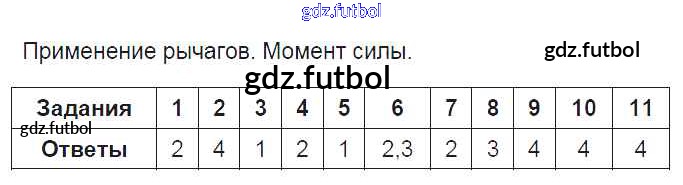 Готовые домашние задания по Физике за 7 класс Чеботарева Тесты УМК 2017 ФГОС - Глава 4. Работа и мощность Момент силы. Применение рычагов