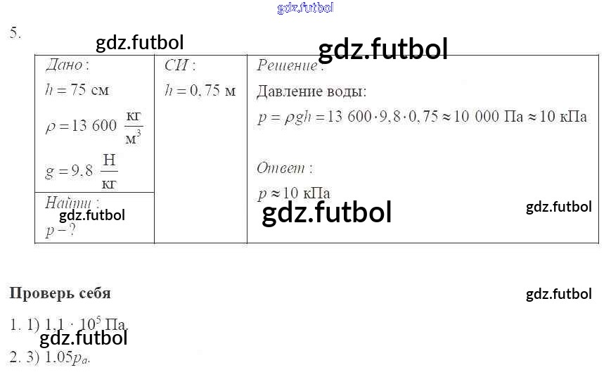 Готовые домашние задания по Физике за 7 класс Касьянов Рабочая тетрадь Вертикаль 2017 ФГОС - Глава 3. Давление твердых тел, жидкостей и газов стр.100