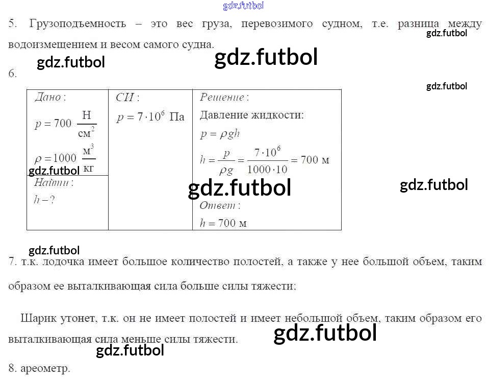 Готовые домашние задания по Физике за 7 класс Касьянов Рабочая тетрадь Вертикаль 2017 ФГОС - Глава 3. Давление твердых тел, жидкостей и газов стр.114