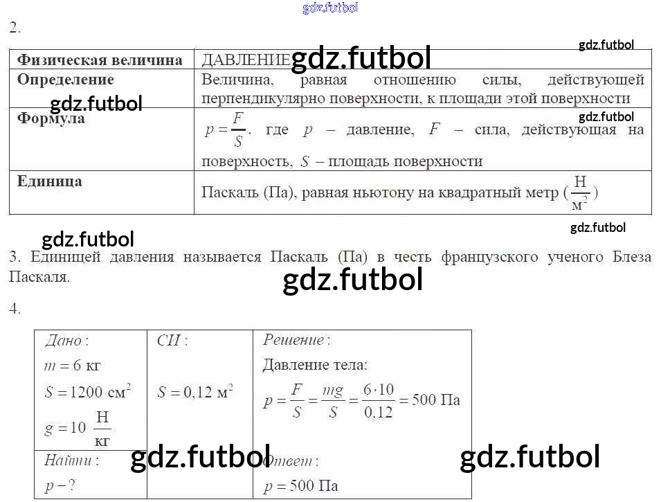 Готовые домашние задания по Физике за 7 класс Касьянов Рабочая тетрадь Вертикаль 2017 ФГОС - Глава 3. Давление твердых тел, жидкостей и газов стр.73