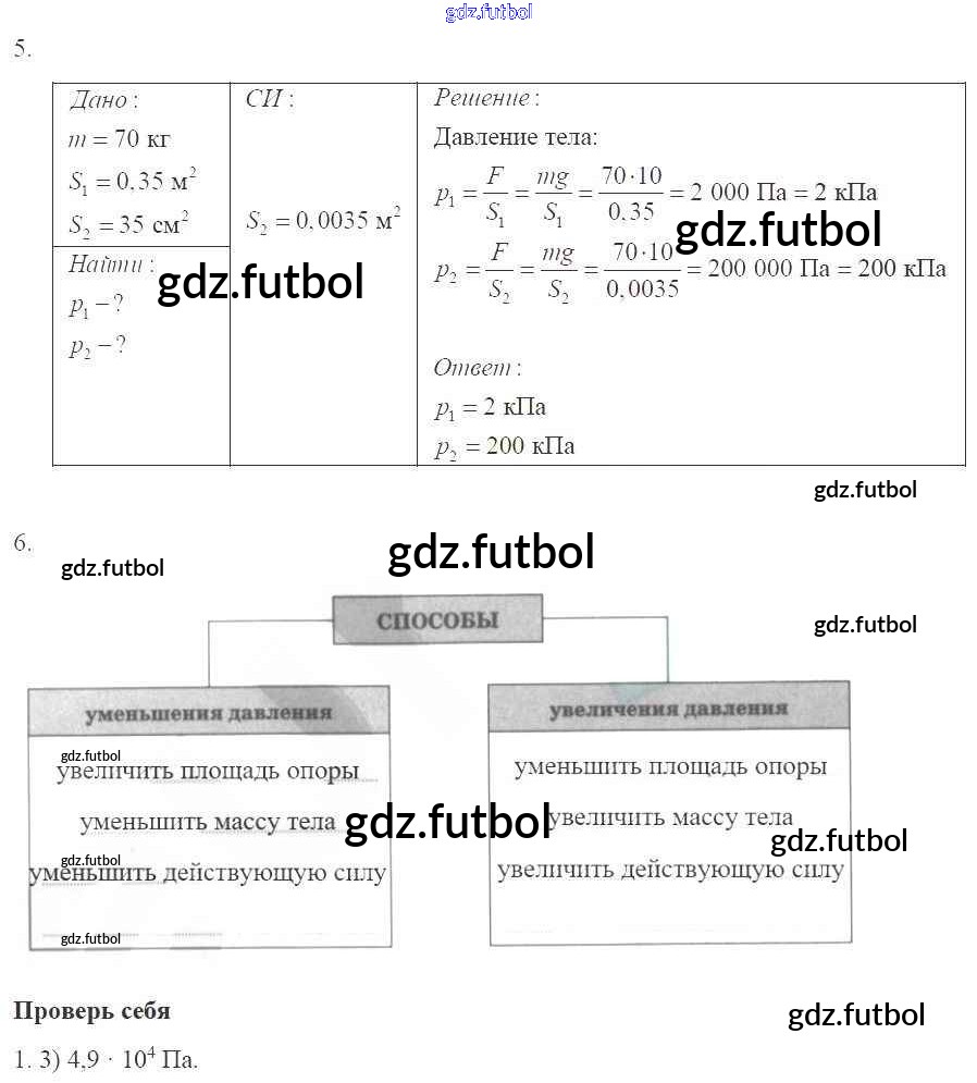 Готовые домашние задания по Физике за 7 класс Касьянов Рабочая тетрадь Вертикаль 2017 ФГОС - Глава 3. Давление твердых тел, жидкостей и газов стр.75