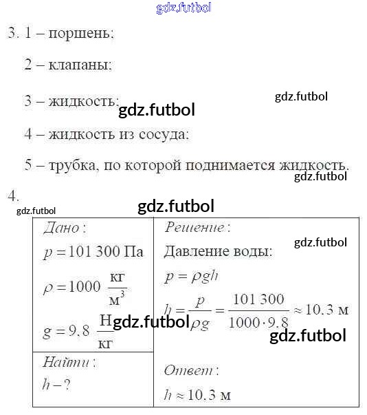Готовые домашние задания по Физике за 7 класс Касьянов Рабочая тетрадь Вертикаль 2017 ФГОС - Глава 3. Давление твердых тел, жидкостей и газов стр.99