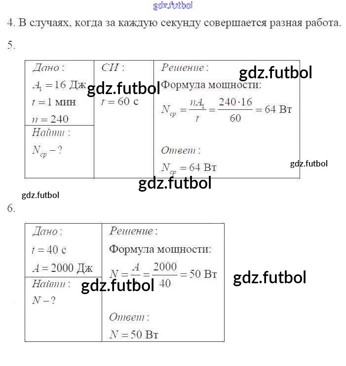 Готовые домашние задания по Физике за 7 класс Касьянов Рабочая тетрадь Вертикаль 2017 ФГОС - Глава 4. Работа и мощность. Энергия стр.126