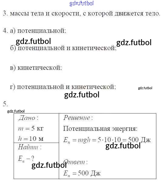 Готовые домашние задания по Физике за 7 класс Касьянов Рабочая тетрадь Вертикаль 2017 ФГОС - Глава 4. Работа и мощность. Энергия стр.151