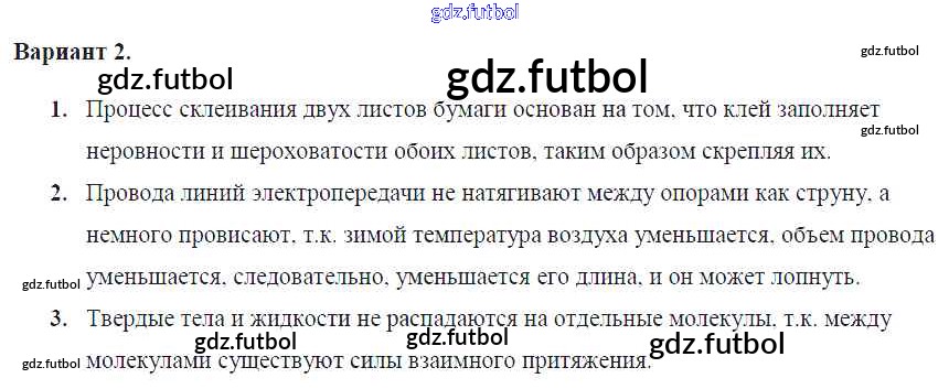 Готовые домашние задания по Физике за 7 класс Марон Самостоятельные и контрольные работы Вертикаль 2016 ФГОС - КР №-1. Первоначальные сведения о строении вещества Вариант №2