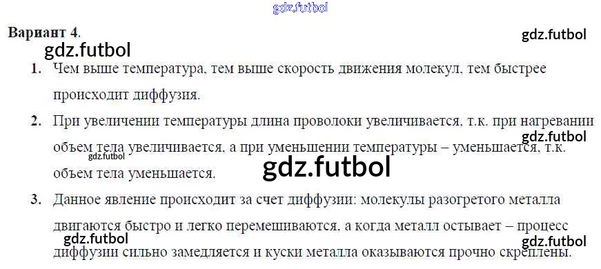 Готовые домашние задания по Физике за 7 класс Марон Самостоятельные и контрольные работы Вертикаль 2016 ФГОС - КР №-1. Первоначальные сведения о строении вещества Вариант №4