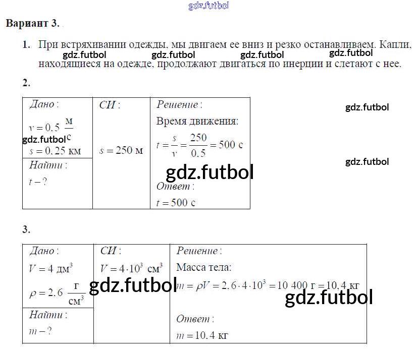 Готовые домашние задания по Физике за 7 класс Марон Самостоятельные и контрольные работы Вертикаль 2016 ФГОС - КР №-2. Взаимодействие тел Вариант №3