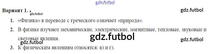 Готовые домашние задания по Физике за 7 класс Марон Самостоятельные и контрольные работы Вертикаль 2016 ФГОС - СР-№1. Что изучает физика Вариант №1