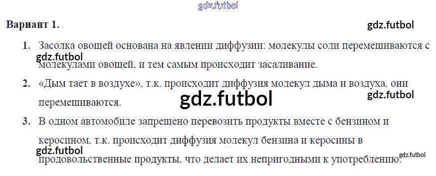 Готовые домашние задания по Физике за 7 класс Марон Самостоятельные и контрольные работы Вертикаль 2016 ФГОС - СР-№10. Диффузия в газах, жидкостях и твердых телах Вариант №1