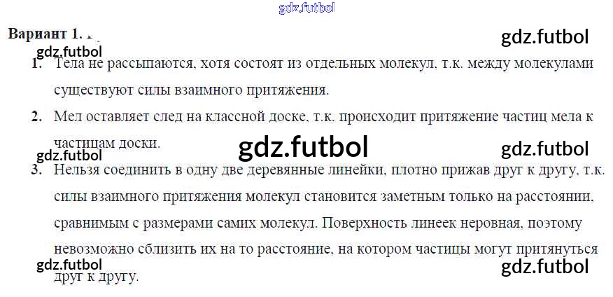 Готовые домашние задания по Физике за 7 класс Марон Самостоятельные и контрольные работы Вертикаль 2016 ФГОС - СР-№11. Взаимное притяжение и отталкивание молекул Вариант №1