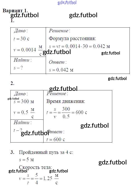 Готовые домашние задания по Физике за 7 класс Марон Самостоятельные и контрольные работы Вертикаль 2016 ФГОС - СР-№17. Расчет пути и времени движения Вариант №1