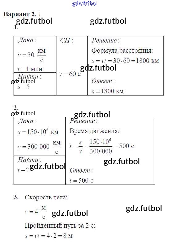 Готовые домашние задания по Физике за 7 класс Марон Самостоятельные и контрольные работы Вертикаль 2016 ФГОС - СР-№17. Расчет пути и времени движения Вариант №2
