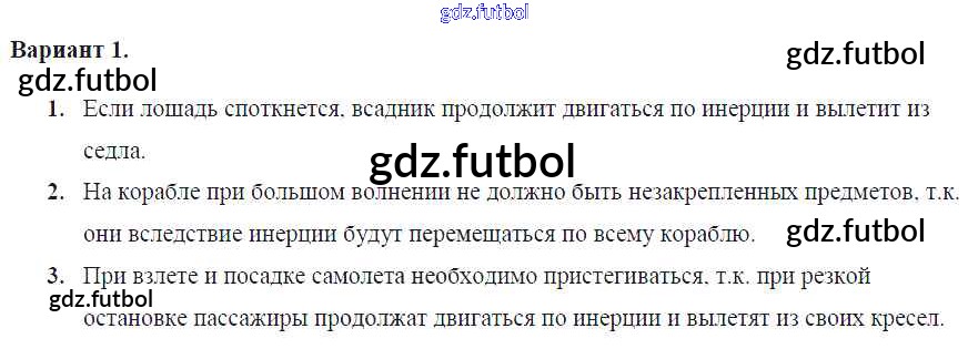 Готовые домашние задания по Физике за 7 класс Марон Самостоятельные и контрольные работы Вертикаль 2016 ФГОС - СР-№18. Инерция Вариант №1