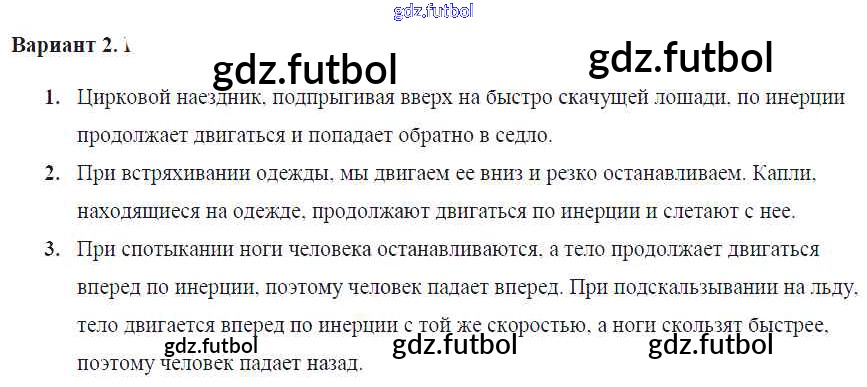 Готовые домашние задания по Физике за 7 класс Марон Самостоятельные и контрольные работы Вертикаль 2016 ФГОС - СР-№18. Инерция Вариант №2
