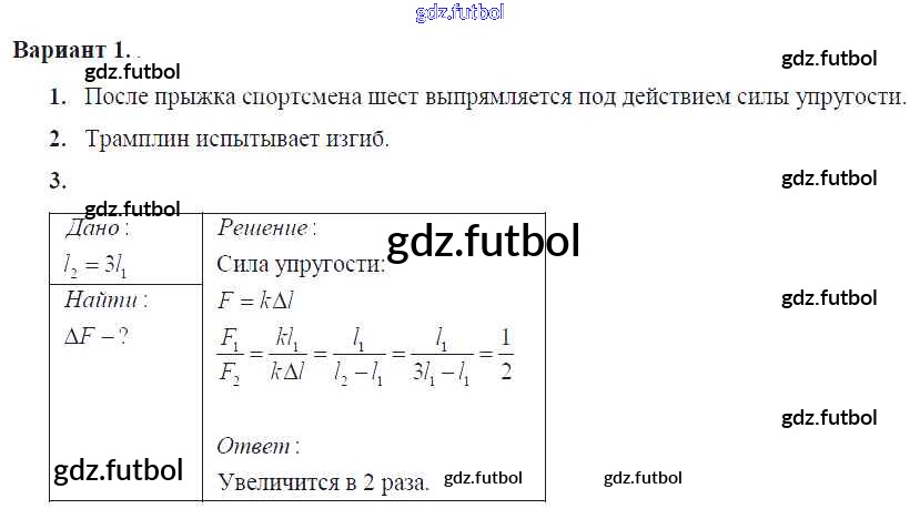 Готовые домашние задания по Физике за 7 класс Марон Самостоятельные и контрольные работы Вертикаль 2016 ФГОС - СР-№26. Сила упругости. Закон Гука Вариант №1