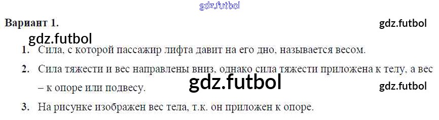 Готовые домашние задания по Физике за 7 класс Марон Самостоятельные и контрольные работы Вертикаль 2016 ФГОС - СР-№27. Вес тела Вариант №1