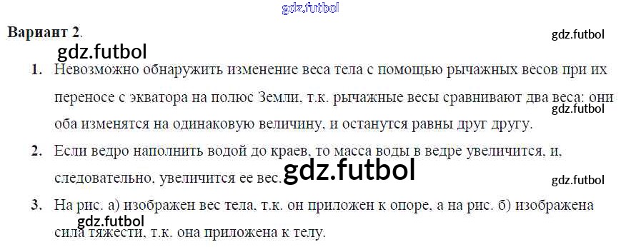 Готовые домашние задания по Физике за 7 класс Марон Самостоятельные и контрольные работы Вертикаль 2016 ФГОС - СР-№27. Вес тела Вариант №2