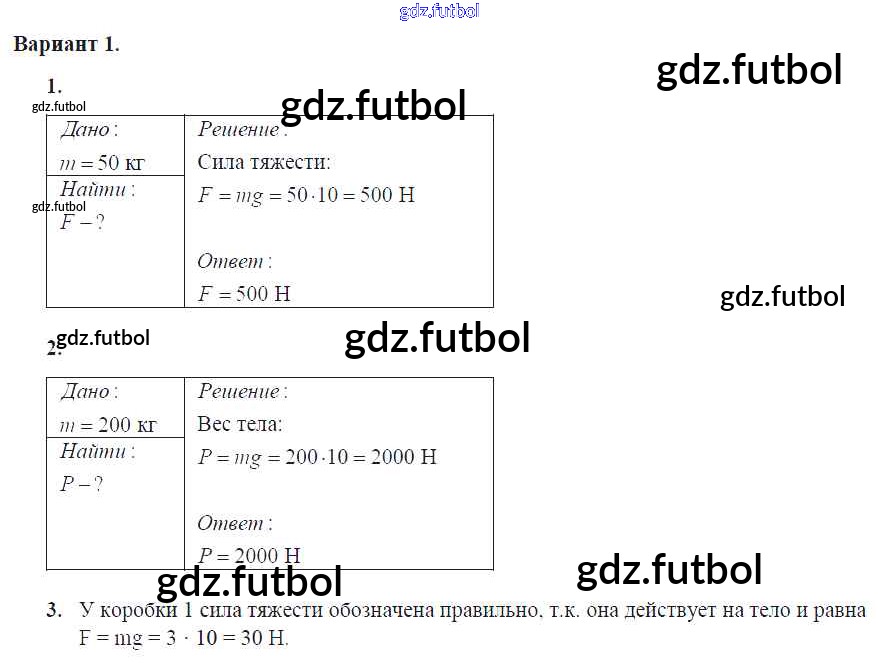 Готовые домашние задания по Физике за 7 класс Марон Самостоятельные и контрольные работы Вертикаль 2016 ФГОС - СР-№28. Единицы силы. Связь между силой тяжести и массой тела Вариант №1