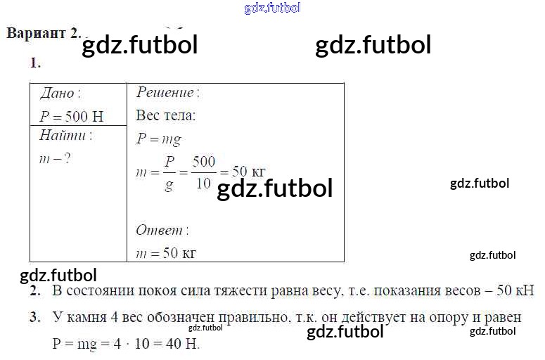 Готовые домашние задания по Физике за 7 класс Марон Самостоятельные и контрольные работы Вертикаль 2016 ФГОС - СР-№28. Единицы силы. Связь между силой тяжести и массой тела Вариант №2