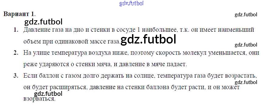 Готовые домашние задания по Физике за 7 класс Марон Самостоятельные и контрольные работы Вертикаль 2016 ФГОС - СР-№37. Давление газа Вариант №1