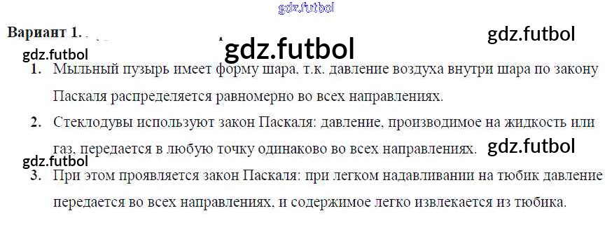 Готовые домашние задания по Физике за 7 класс Марон Самостоятельные и контрольные работы Вертикаль 2016 ФГОС - СР-№38. Передача давления жидкостями и газами. Закон Паскаля Вариант №1