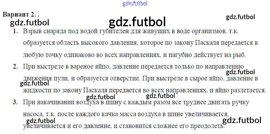 Готовые домашние задания по Физике за 7 класс Марон Самостоятельные и контрольные работы Вертикаль 2016 ФГОС - СР-№38. Передача давления жидкостями и газами. Закон Паскаля Вариант №2