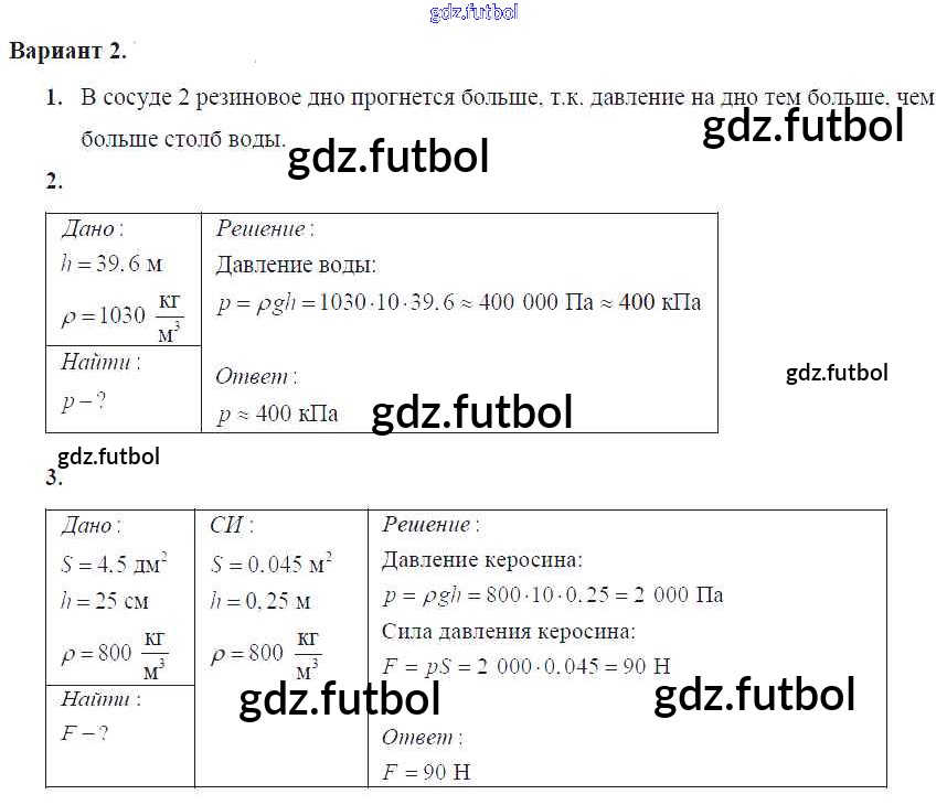 самостоятельная работа / ср-№40. расчет давления жидкости на дно и стенки сосуда / вариант №2