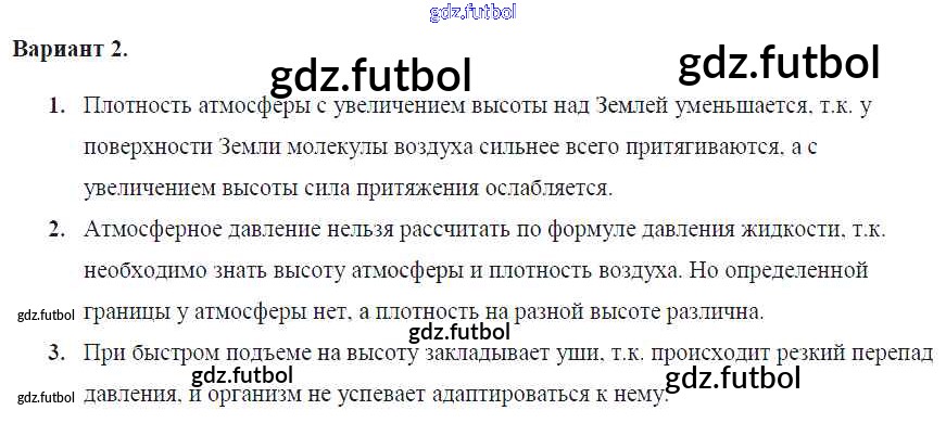 Готовые домашние задания по Физике за 7 класс Марон Самостоятельные и контрольные работы Вертикаль 2016 ФГОС - СР-№43. Почему существует воздушная оболочка Земли Вариант №2