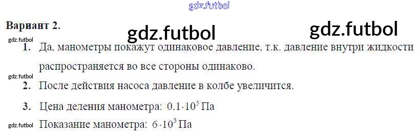 Готовые домашние задания по Физике за 7 класс Марон Самостоятельные и контрольные работы Вертикаль 2016 ФГОС - СР-№47. Манометры Вариант №2