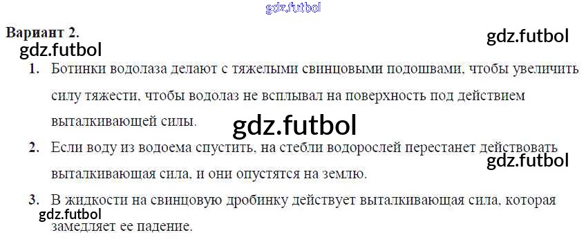 Готовые домашние задания по Физике за 7 класс Марон Самостоятельные и контрольные работы Вертикаль 2016 ФГОС - СР-№50. Действие жидкости и газа на погруженное в них тело Вариант №2