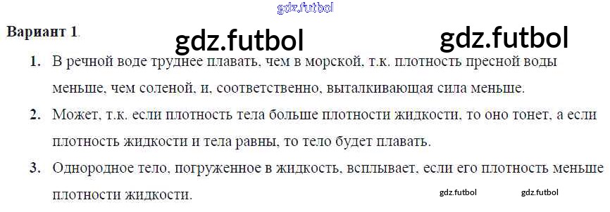 Готовые домашние задания по Физике за 7 класс Марон Самостоятельные и контрольные работы Вертикаль 2016 ФГОС - СР-№52. Плавание тел Вариант №1