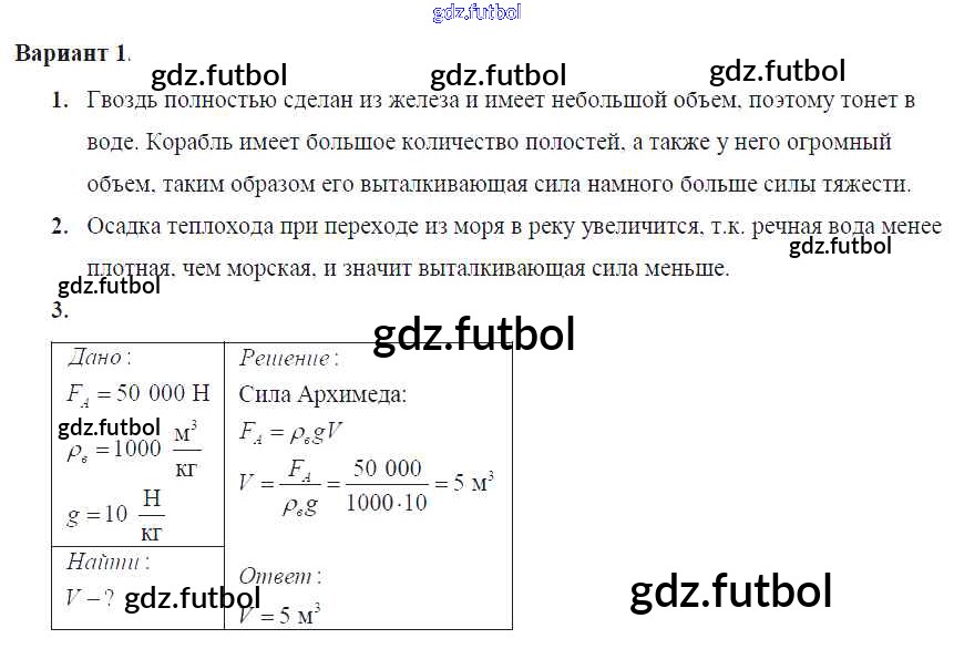 Готовые домашние задания по Физике за 7 класс Марон Самостоятельные и контрольные работы Вертикаль 2016 ФГОС - СР-№53. Плавание судов Вариант №1