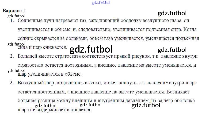 Готовые домашние задания по Физике за 7 класс Марон Самостоятельные и контрольные работы Вертикаль 2016 ФГОС - СР-№54. Воздухоплавание Вариант №1