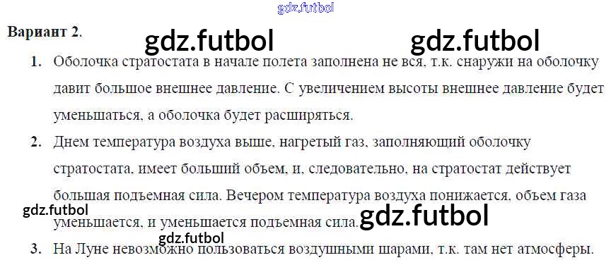 Готовые домашние задания по Физике за 7 класс Марон Самостоятельные и контрольные работы Вертикаль 2016 ФГОС - СР-№54. Воздухоплавание Вариант №2
