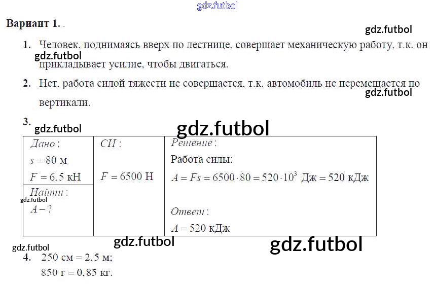 Готовые домашние задания по Физике за 7 класс Марон Самостоятельные и контрольные работы Вертикаль 2016 ФГОС - СР-№55. Механическая работа. Единицы работы Вариант №1