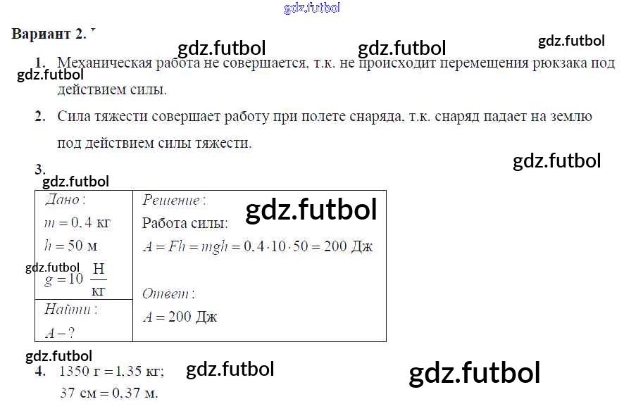 Готовые домашние задания по Физике за 7 класс Марон Самостоятельные и контрольные работы Вертикаль 2016 ФГОС - СР-№55. Механическая работа. Единицы работы Вариант №2