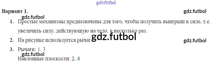 Готовые домашние задания по Физике за 7 класс Марон Самостоятельные и контрольные работы Вертикаль 2016 ФГОС - СР-№57. Простые механизмы Вариант №1