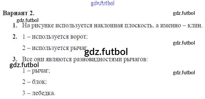 Готовые домашние задания по Физике за 7 класс Марон Самостоятельные и контрольные работы Вертикаль 2016 ФГОС - СР-№57. Простые механизмы Вариант №2